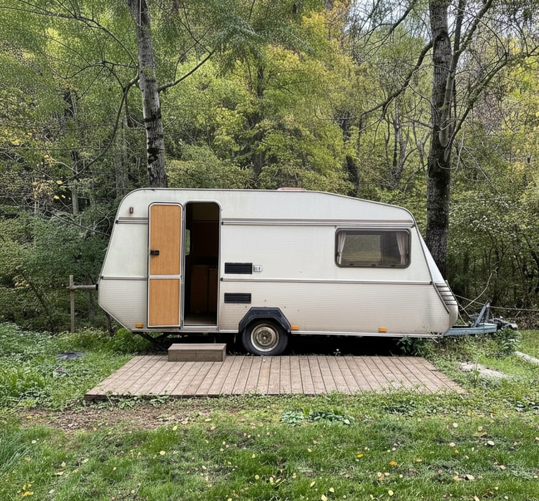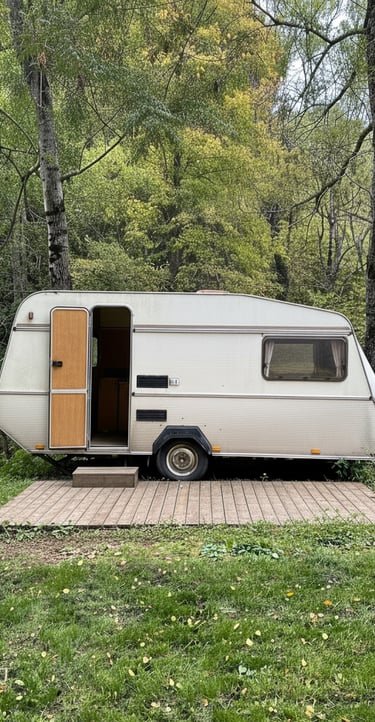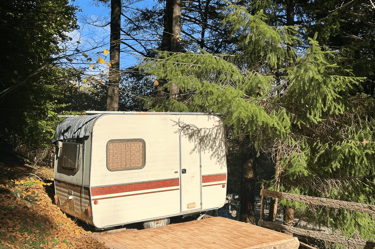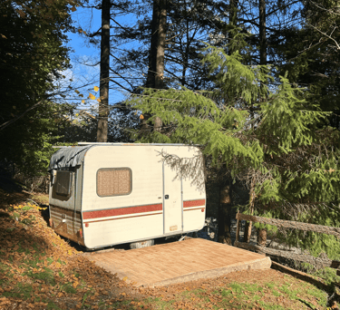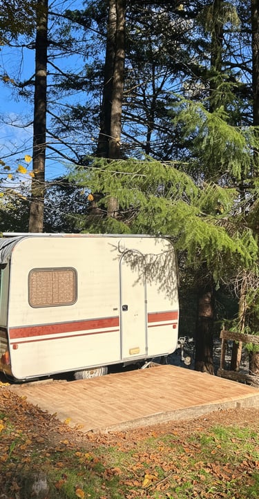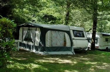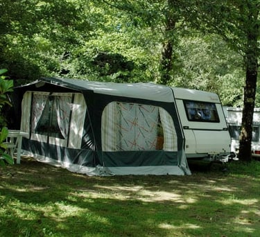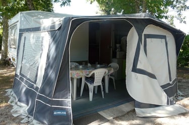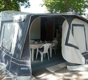 Pour 2 à 4 personnes. Auvent complet faisant terrasse avec gazinière, réfrigérateur et table à manger. Électricité comprise. Sanitaires communs. Linge de lit/serviettes de bains non fournis.