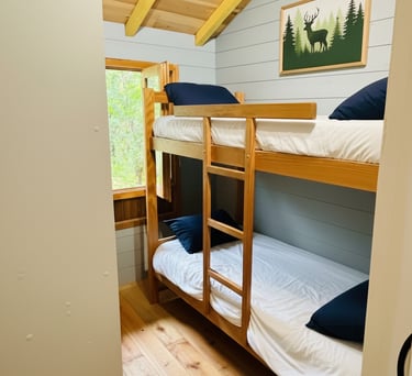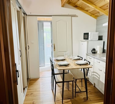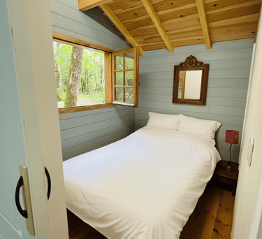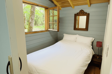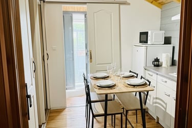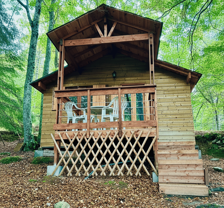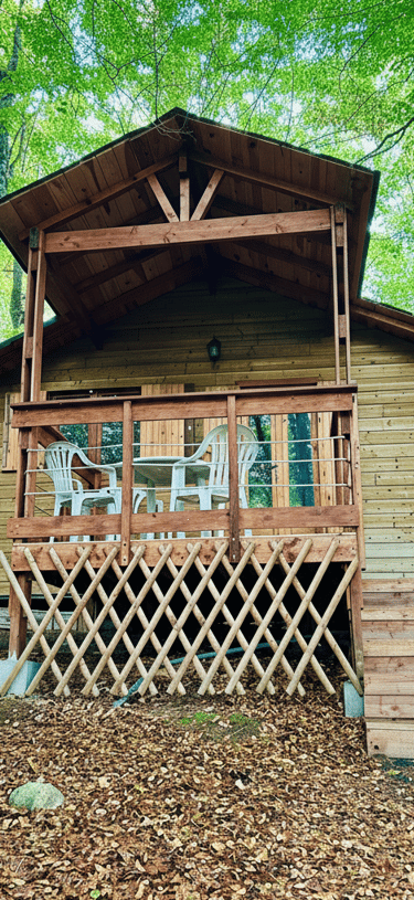 Chalet en bois pour 4 personnes de 25 m2. Deux chambres (1 lit double et 2 lits simples superposés), une salle d'eau privative et une terrasse pour profiter du cadre apaisant et verdoyant de Quérigut. Cuisine avec réfrigérateur, micro-ondes, 2 feux gaz.