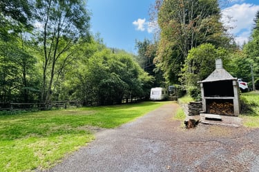 Choisissez un emplacement nu pour votre tente ou votre camping-car à l'ombre des arbres ou au bord de la rivière. Sanitaires communs. Électricité sur demande (5 euros/nuit).